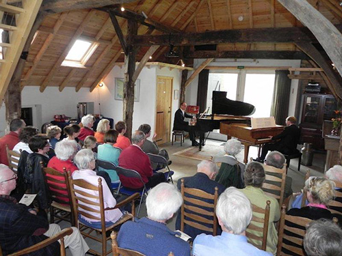 2023 Het is lang stil geweest rond Muziek op De Welle. Het gebruik van de Schöppe als vakantiewoning, vergader- en repetitieruimte, feestlocatie nam in deze jaren juist een hoge vlucht. Zonder vleugel kunnen we geen concerten met piano meer organiseren in de Schöppe. Maar het bloed kruipt waar het niet gaan kan: in 2023 keerden we terug naar de woonkamer! Precies zoals we in 2005 begonnen met onze huiskamerconcerten. Niet meer in de frequentie van 10 per jaar, maar we zijn er weer!